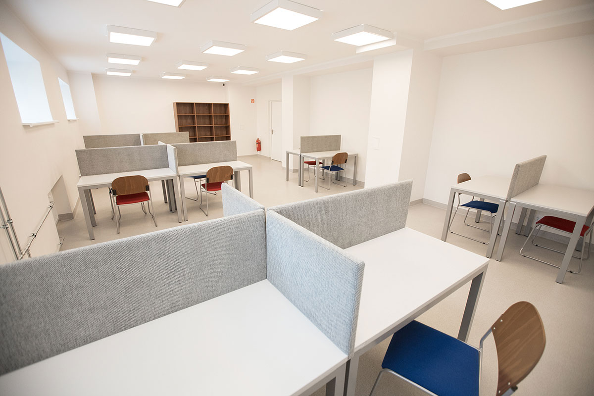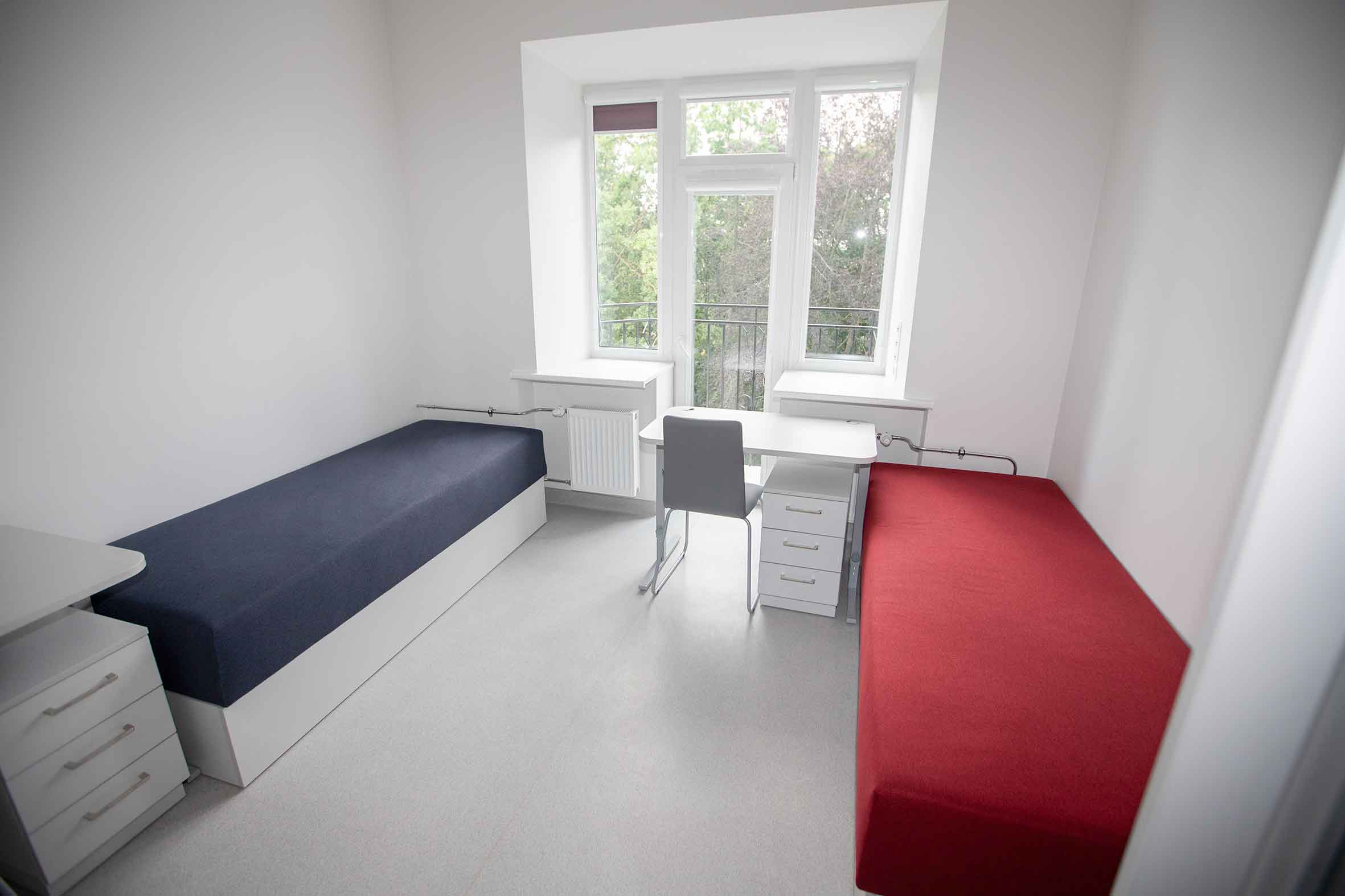 Each room is furnished with two beds, two wardrobes, two desks, and a fridge. The room furniture can be adjusted to meet students’ specific needs and requests. Upon moving in, a room protocol is created to list all furniture that is to be retained. Pillows, duvets, and bed linen are provided free of charge.
