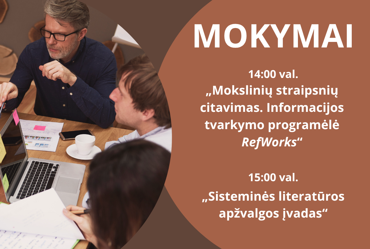- „Sisteminės literatūros apžvalgos įvadas“, kurie vyks š. m. lapkričio 13 d. 15 val. LSMU Bibliotekos ir informacijos centro 402 auditorijoje. Registracija į mokymus.