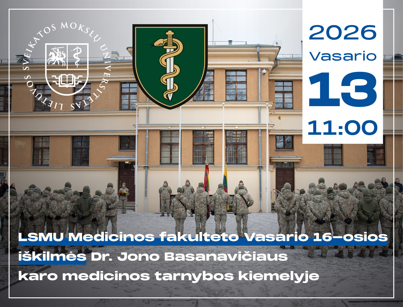LSMU Medicinos fakultetas kviečia į Vasario 16-osios iškilmes Dr. Jono Basanavičiaus karo medicinos tarnybos kiemelyje.