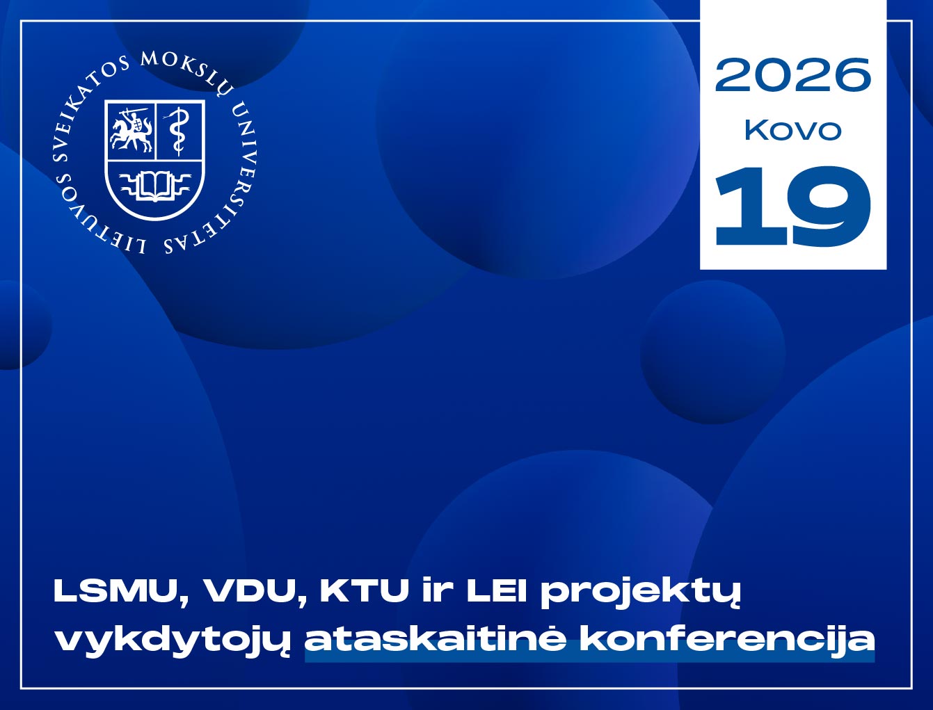Kviečiame į Kauno technologijos universiteto, Lietuvos sveikatos mokslų universiteto, Vytauto Didžiojo universiteto ir Lietuvos energetikos instituto bendrų mokslo projektų ataskaitinę konferenciją, kuri įvyks 2026 m. kovo 19 val. KTU III rūmų, VI aukšte, 605 salėje, Laisvės al. 13, Kaune.