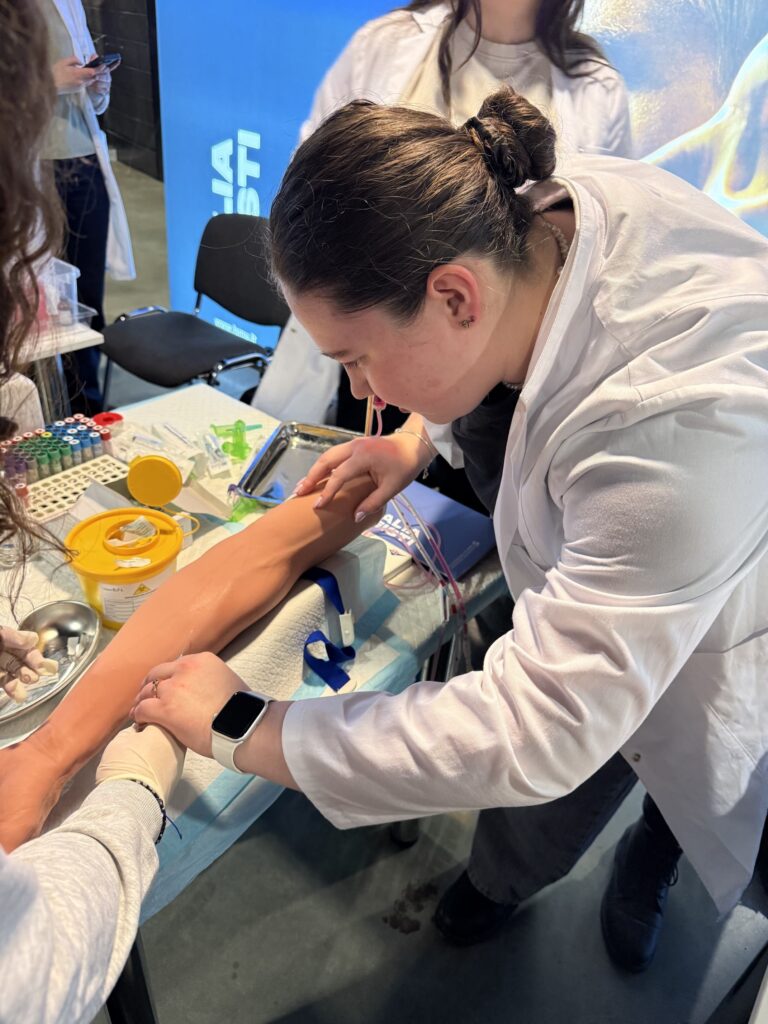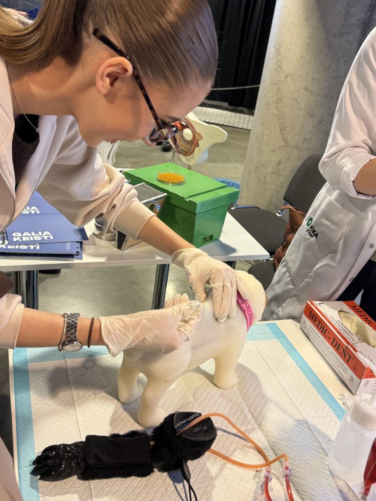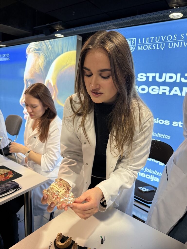 Vasario 24 dieną į „Žalgirio areną“ atvykę vyresniųjų klasių moksleiviai buvo kviečiami akimirkai tapti LSMU studentais – išbandyti vaistų kapsulių gamybą, paimti kraują iš muliažo, susipažinti su odontologijoje naudojamais instrumentais bei daugiau sužinoti apie gyvūnus. Norinčių netrūko – vieni drąsiai „matavosi“ profesiją, kiti iš toliau stebėjo išbandančius draugus.
